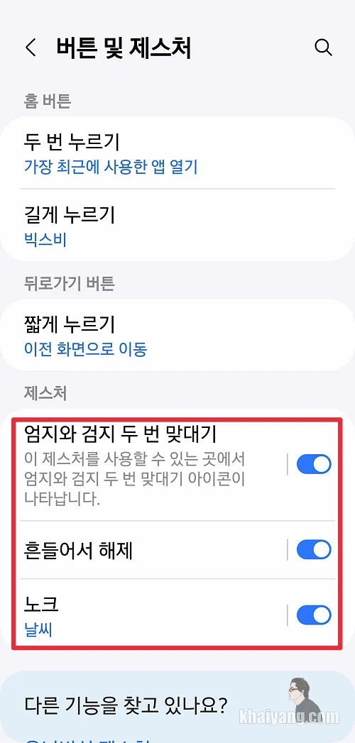 제스처 항목에 노크 기능도 있는데 그냥 이름만 보면 화면을 노크해서 작동하는 방식이라고 생각할 겁니다.