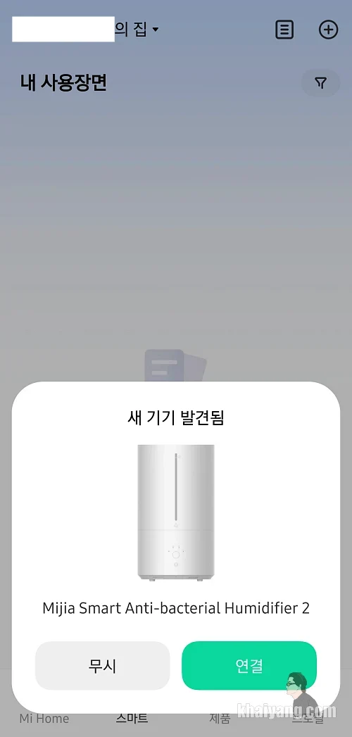 샤오미 가습기 제품에 전원을 켜시고 기다리면 앱에서 자동으로 기기를 인식을 합니다.