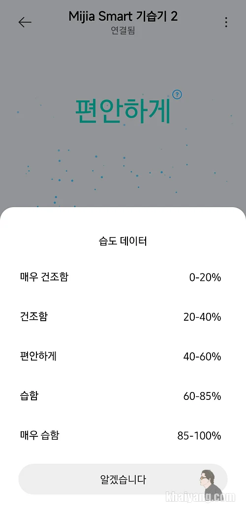 습도 데이터를 보니 편안한 수치가 40~60% 정도라고 합니다.