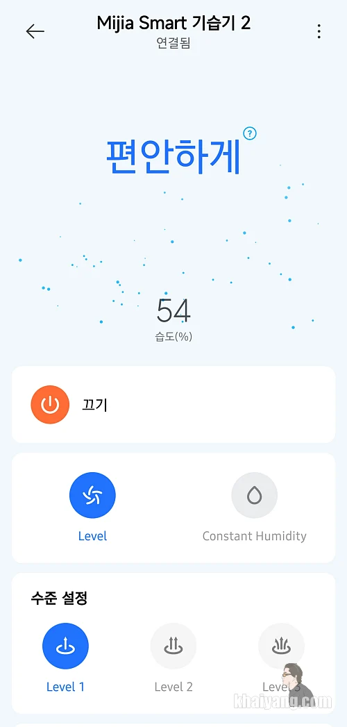 목표 습도를 설정하면 그 수치까지 맞춰주고 설정 습도에 도달하면 자동으로 기기를 끄게 할 수도 있습니다.