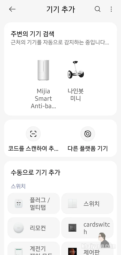 만약 자동으로 인식을 안 한다 그러면 상단의 + 버튼을 눌러서 기기 추가를 하시면 됩니다.