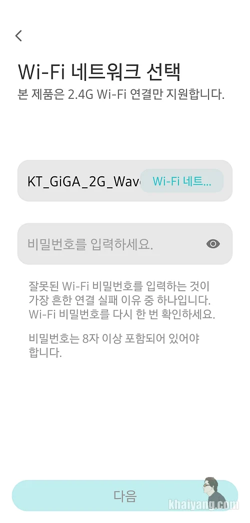 2G 와이파이 네크워크를 선택하고 사용하는 비밀번호를 입력하시면 모든 연결은 끝납니다.