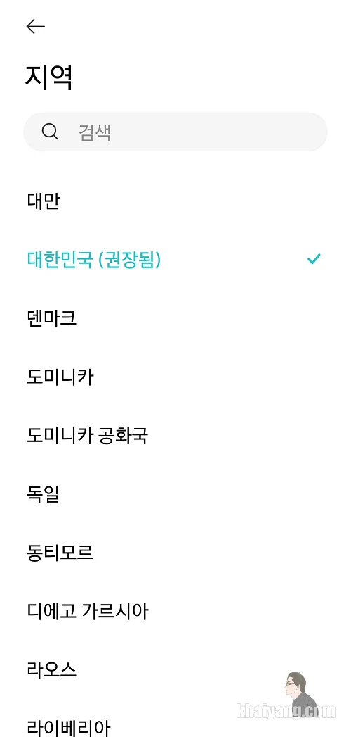 앱에서는 권장으로 대한민국을 선택하라고 유혹하는데 넘어가시면 안됩니다.