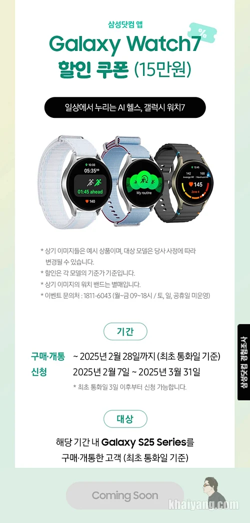 갤럭시워치7 구매하려는 분들은 사전구매 기간에 받은 쿠폰들이 싸게 중고 시장에 풀릴때 이용해서 구매하는 것도 좋은 방법 입니다.