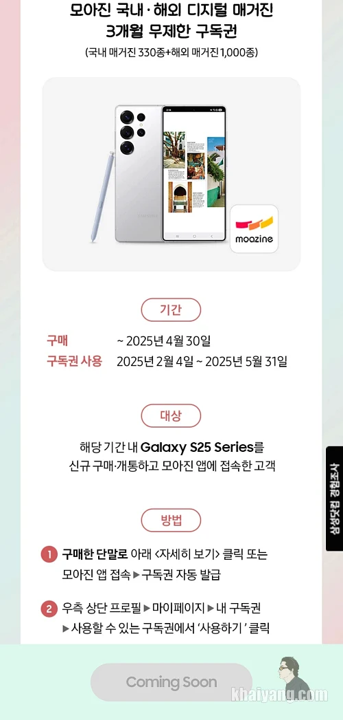 유튜브 혜택이 지난번 갤럭시S24 시리즈때는 없었던 것 같은데 이번에 다시 돌아온 것 같습니다. 요즘 유튜브 구독료가 인플레이션 영향으로 상당히 비싸지고 있기에 유용한 혜택이라 할 수 있습니다.