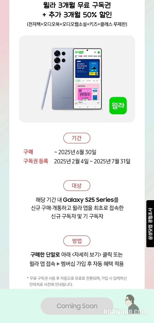 이외에 윌라 3개월 무료 구독권 + 추가 3개월 50% 할인을 제공합니다.