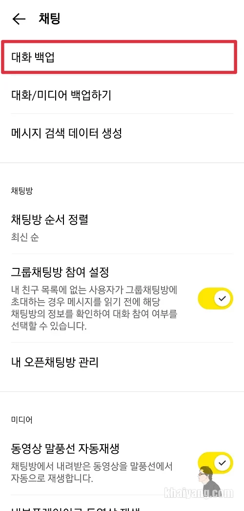 하단의 대화 백업 항목을 선택합니다.