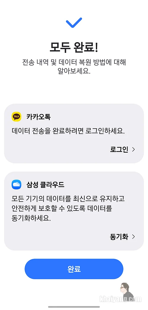 카카오톡 데이터 전송이 모두 완료 되었다는 화면을 볼 수 있습니다.