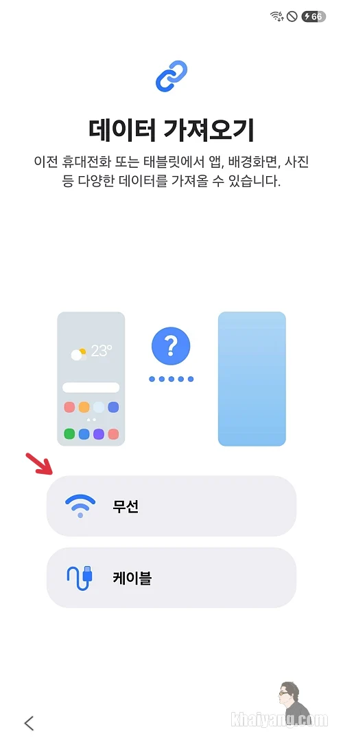 카카오톡 데이터 같은 경우 용량이 크지 않고 실제로 해보니 케이블이랑 무선이랑 시간 차이도 크게 나지 않는 것 같았습니다. 그리고 케이블을 연결하게 되면 데이터가 전송되는 동안 핸드폰 사용이 불편하다는 단점이 있습니다.