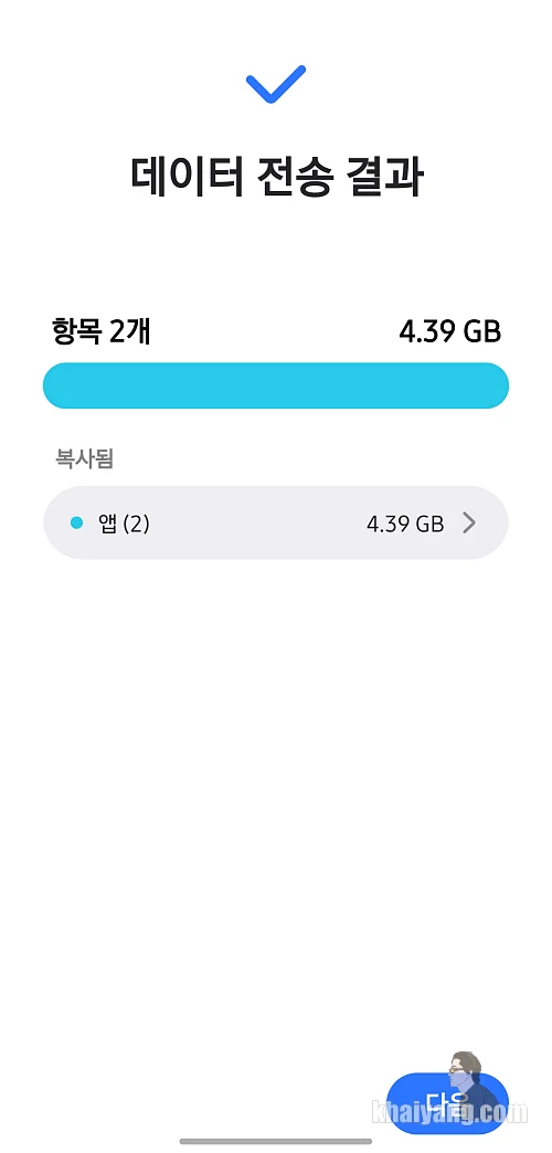 카카오톡 데이터 전송이 모두 완료 되었다는 화면을 볼 수 있습니다.
