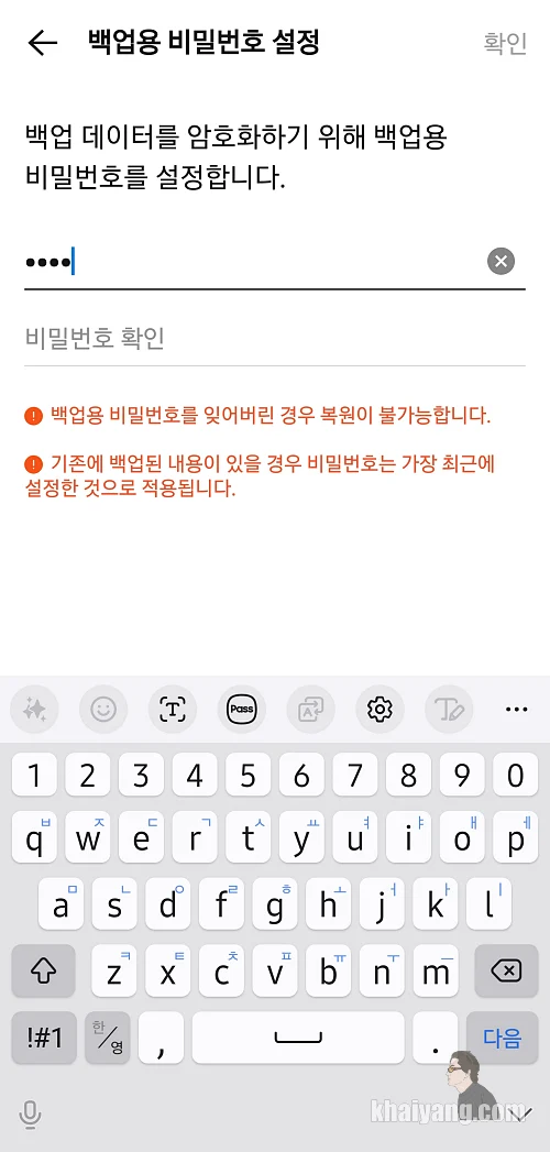 백업용 비밀번호를 설정 합니다.