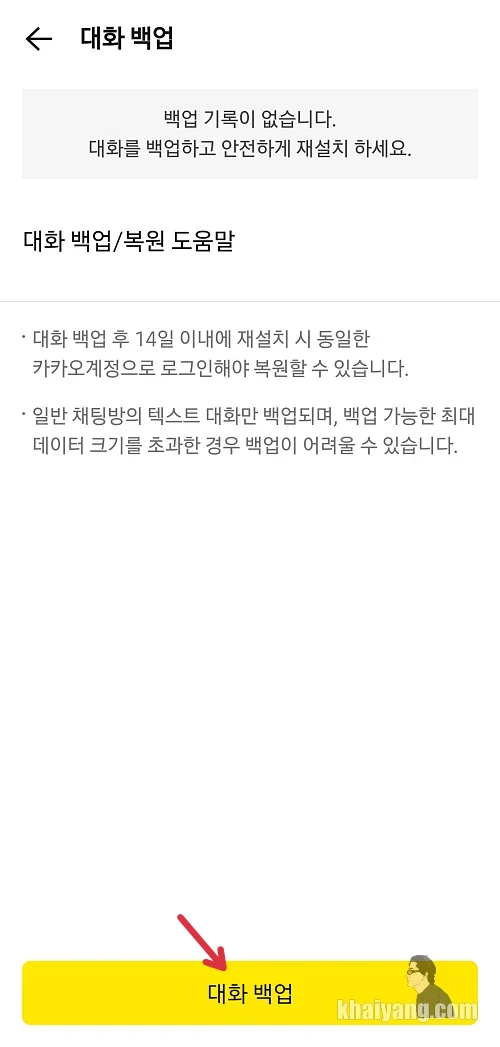 대화 백업을 선택 합니다.