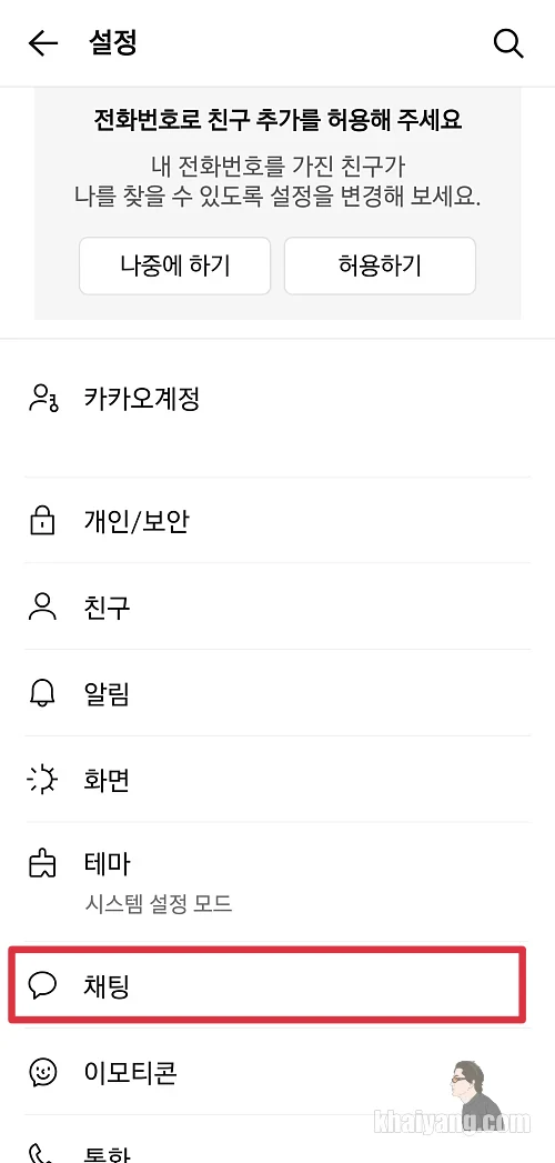 채팅 항목을 선택 합니다.