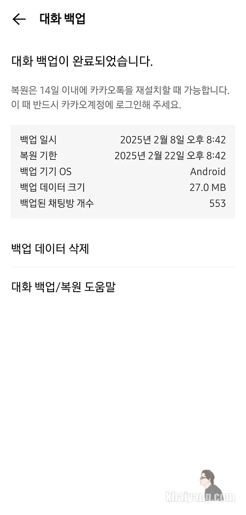 대화 백업이 완료 되었습니다.