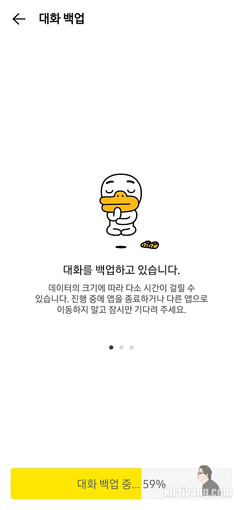 카카오톡 백업을 할때는 대화만 백업이 되고 이전에 오래전에 올렸던 사진은 백업이 되지 않습니다.