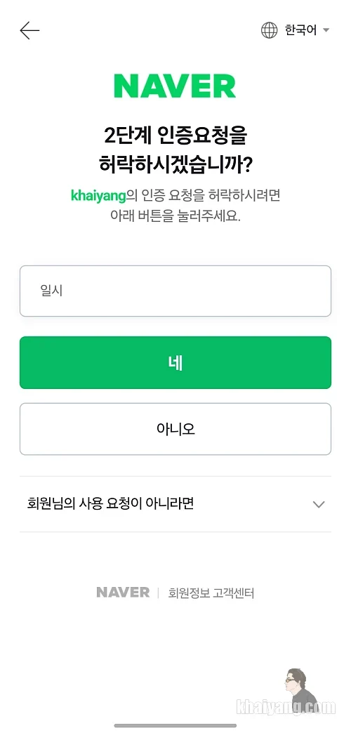 2단계 인증 요청을 수락 합니다. 네를 눌러주세요.