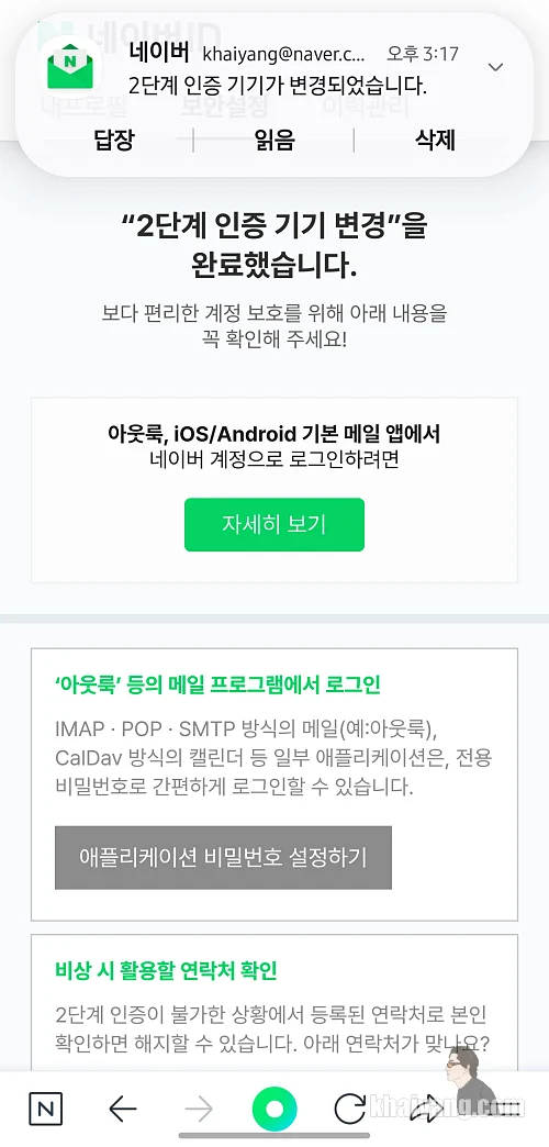 그렇기 때문에 기기를 변경하고 난 다음에는 네이버 2단계 기기 인증 변경은 최대한 빨리 하는 것이 좋습니다. 나중에 한다고 하다가 이런 봉변을 당할 수 있기 때문입니다.