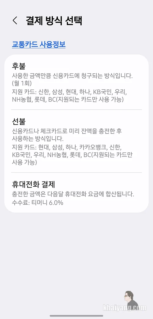 원하는 결제 방식을 선택하시면 되는데 후불 방식이 가장 편리하긴 합니다.