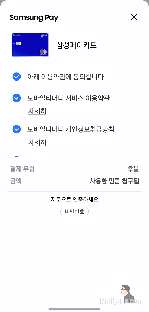 저는 10만원 한도가 있는 삼성페이 카드를 선택 했습니다.