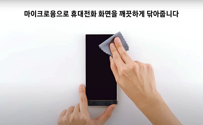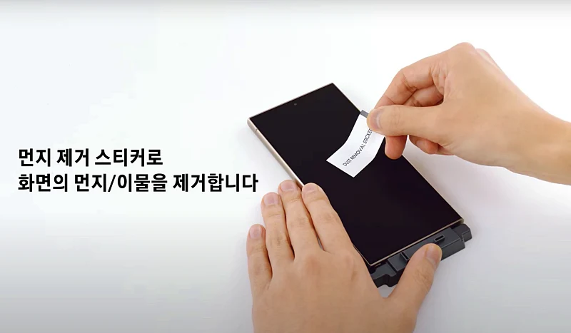 이 작업 하기전에 다시한번 화면에 먼지가 없는지 살펴 보셔야 합니다. 먼지가 있다면 먼지 스티커로 먼지를 제거해 주고 지문이 뭍었다면 마이크로 융으로 닦아 주셔야 합니다.