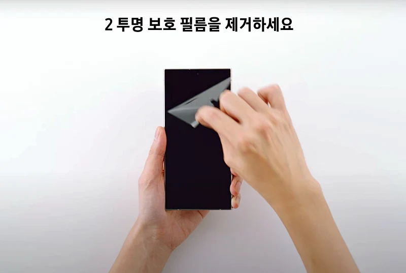 그건 신경 쓰지 마시고 이제 투명 보호 필름을 제거 합니다.
