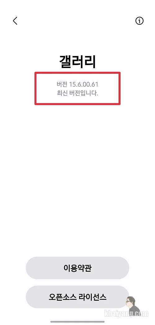 갤러리 설정에서 하단에 있는 갤러리 정보를 선택 합니다.