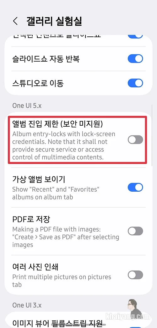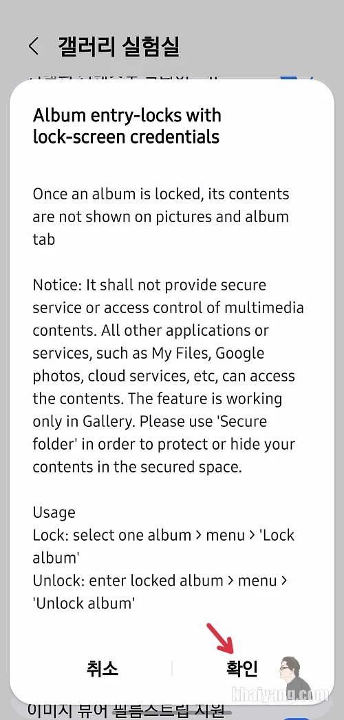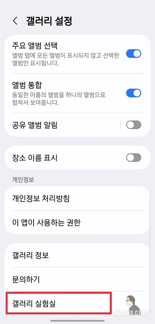 하지만 이런 부분이 걱정되시면 갤러리 실험실 기능은 사용하지 않으셔도 됩니다.