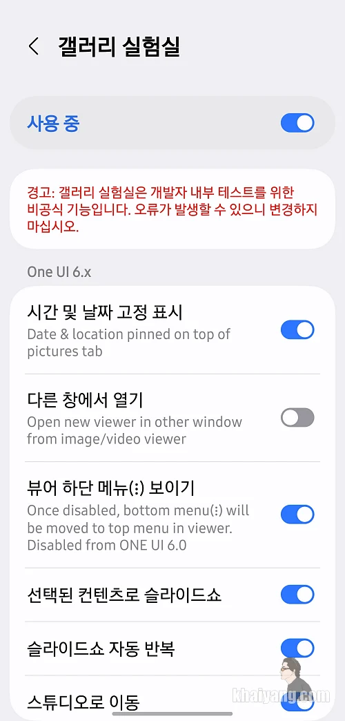 (만약 실험실 기능들이 잘 적용이 안되면 갤러리 앱을 닫고 다시 열고 그래도 안되면 전원을 ON/OFF 해보시기를 바랍니다)