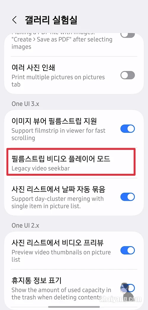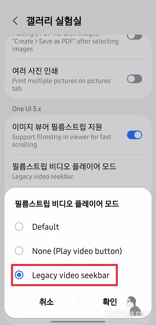 갤러리 실험실에서 원 UI 3.X 에서 필름 스트립 비디오 플레이어 모드를 활성화 시킵니다.