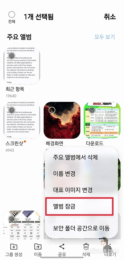 앨범 잠금 기능을 이제 사용해 보겠습니다.