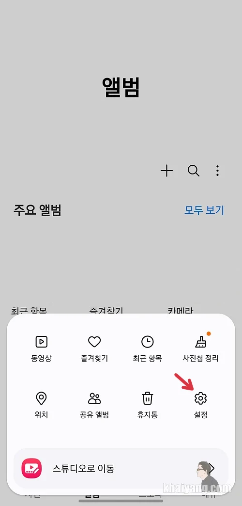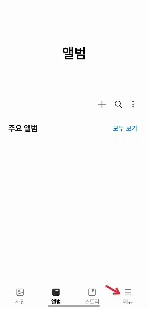 갤러리 앱을 열어서 하단에 있는 메뉴를 선택 합니다.