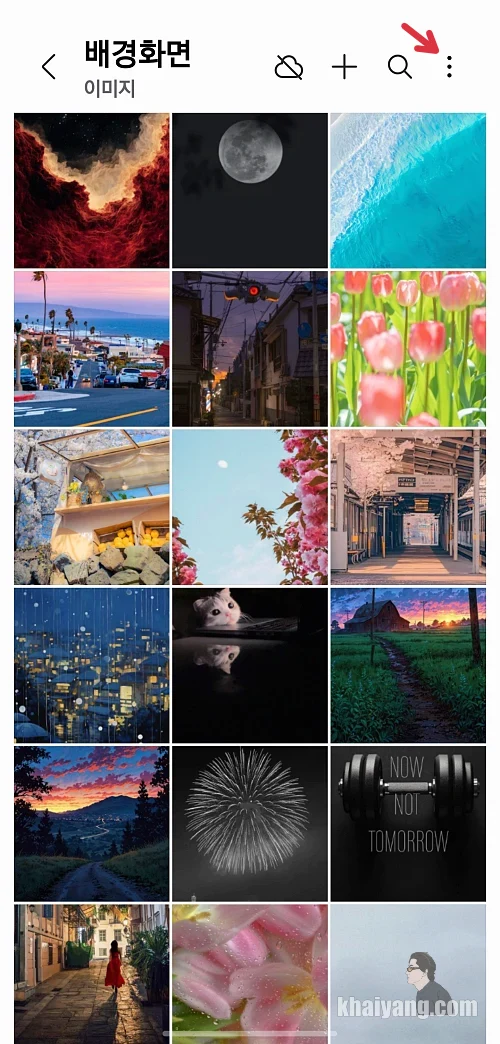 잠긴 앨범의 자물쇠를 풀고 들어간 다음에 화면 위쪽에 있는 점 3개를 선택 합니다.