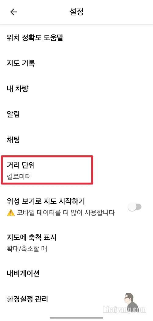 거리 단위를 기본인 자동에서 km 로 바꿔놓습니다.