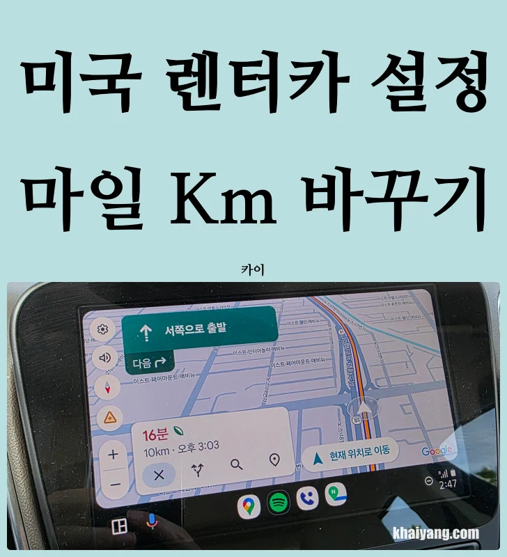 미국 렌터카 설정! 안드로이드 오토 마일 -> 킬로미터(km) 바꾸기(구글 내비 ,허츠 말리부)