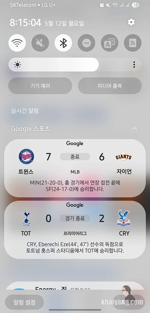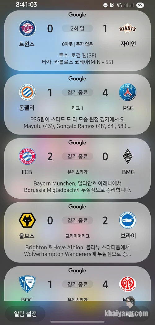 만약 나우바 알림이 뜨지 않는다면 구글 앱에서 알림 설정에서 스포츠 항목을 활성화 시키시기 바랍니다.