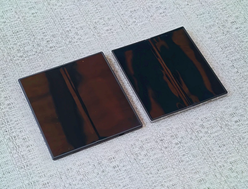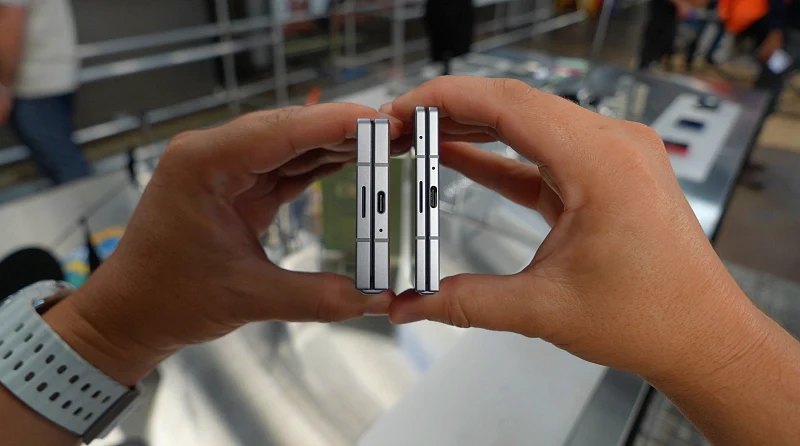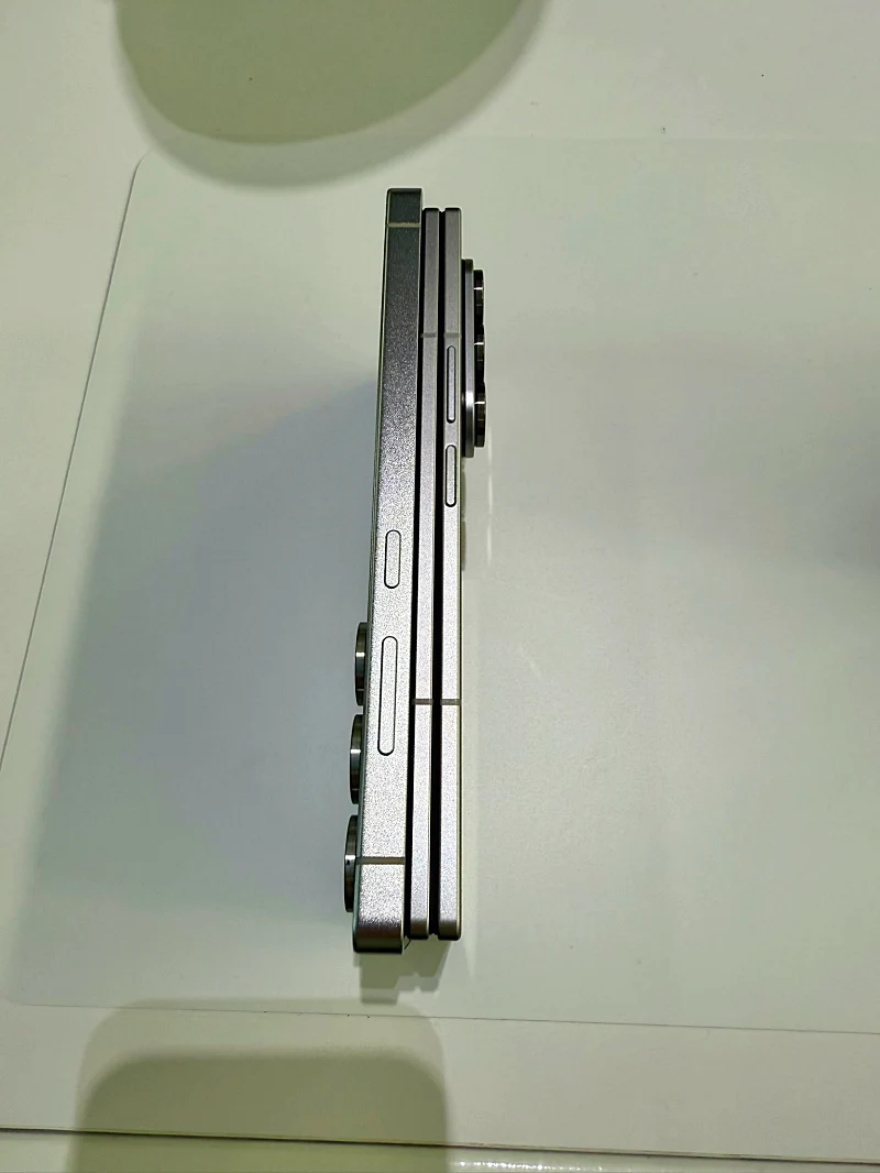 폴드6 와 폴드7 의 두께 비교인데 한눈에 봐도 얼마나 얇아졌는지 알 수 있습니다.
