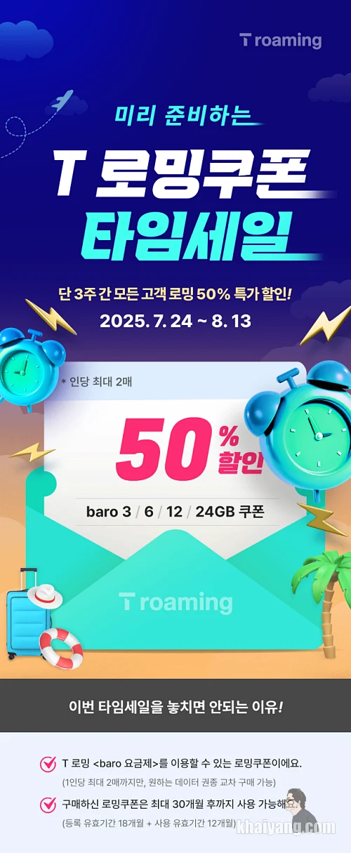 여름휴가 해외여행 꿀팁! SKT 티로밍 특가 반값 50% 타임세일 (이심eSIM 보다 좋은점?)