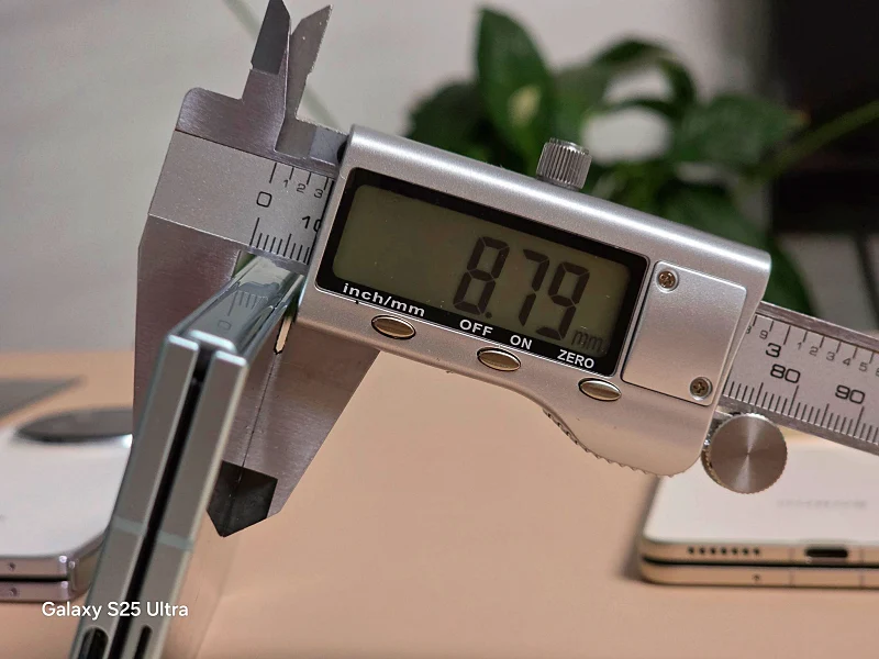 반면 갤럭시Z폴드7은 제조사 공식정보 8.9mm 보다 더 얇은 8.82mm 실측이 되었습니다.