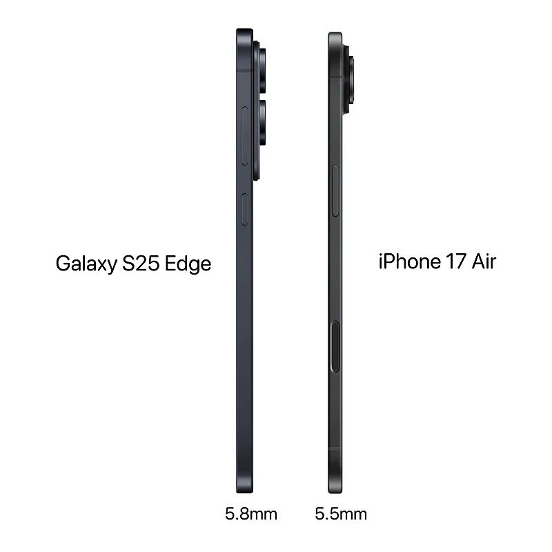 아이폰17 에어의 두께는 5.5mm 로 라이벌(?)인 갤럭시S25 엣지 (5.8mm) 보다 0.3mm가 더 얇습니다.