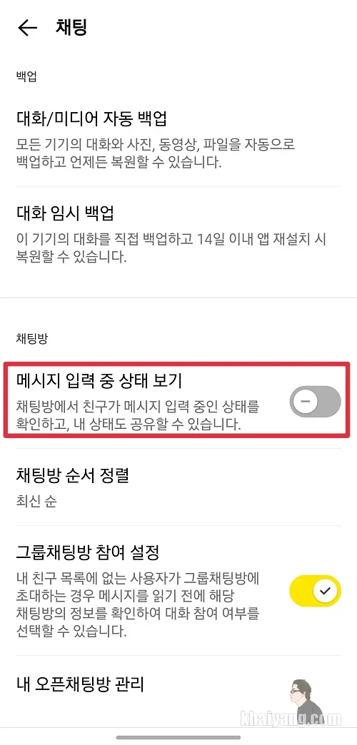 카톡 메시지 입력 중 상태 기능 비활성화 방법