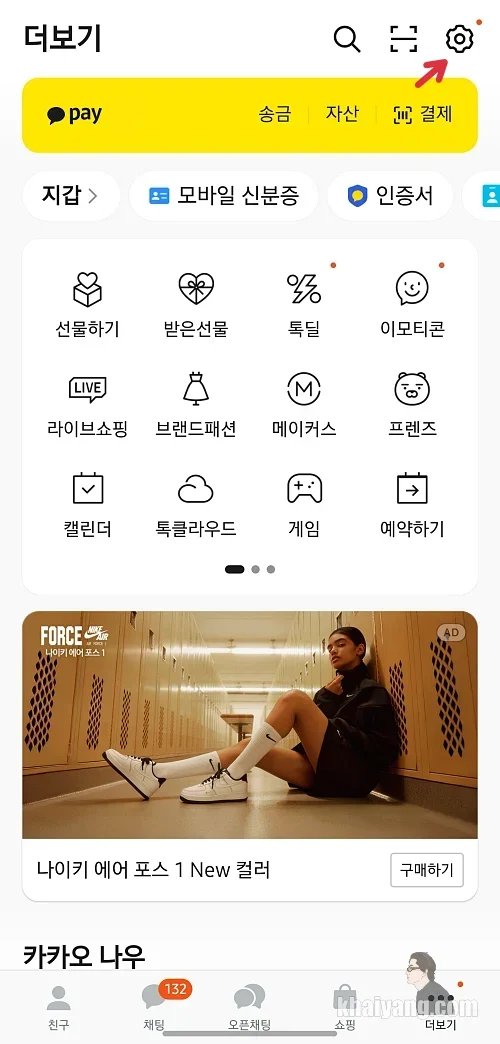 카카오톡에서 상단 우측에 있는 설정 아이콘을 선택 합니다.
