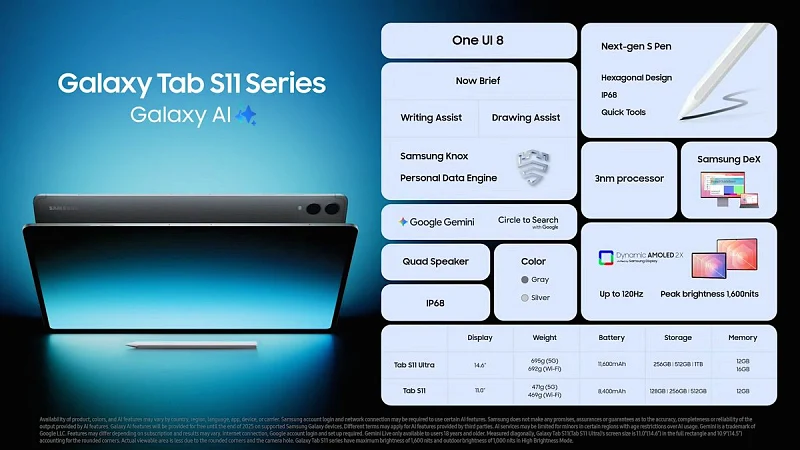‘갤럭시 탭S11 울트라’는 12GB 메모리에 256GB, 512GB 스토리지와 16GB 메모리에 1TB 스토리지로, ‘갤럭시 탭 S11’은 12GB 메모리에 128GB, 256GB, 512GB 스토리지로 구성되었습니다.