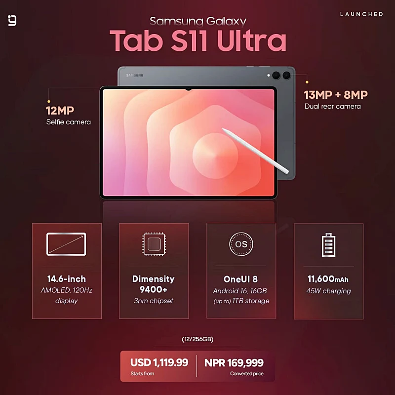 가격을 보면 메모리와 저장공간 등 세부 사양에 따라 각각 ‘갤럭시 탭 S11 울트라’는 159만 8,300원에서 240만 6,800원, ‘갤럭시 탭 S11’은 99만 8,800원에서 147만 7,300원 입니다.