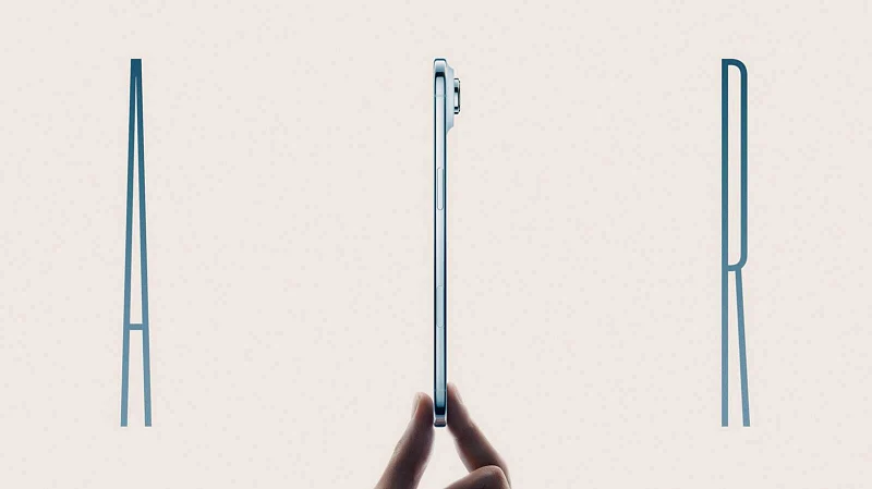 엣지는 세로형 후면 카메라 배치가 되어 있는 반면 에어는 긴 가로형으로 되어 있습니다.