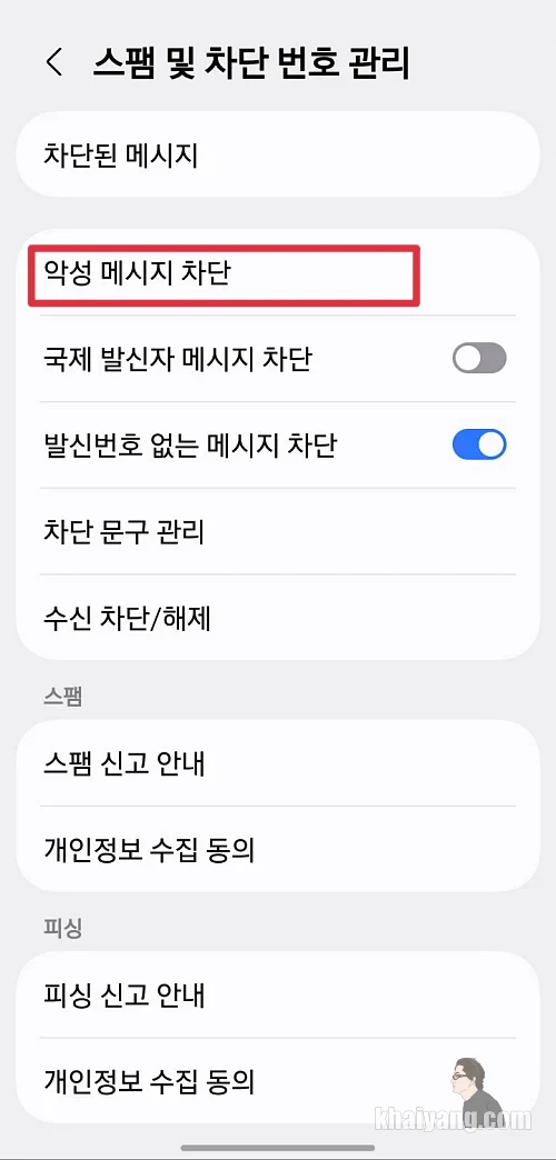 전화 보이스 피싱 의심 전화 알림을 소개해 드렸는데, 추가로 문자에서 스팸 및 악성 메시지 차단 설정 기능도 소개해 드리겠습니다.