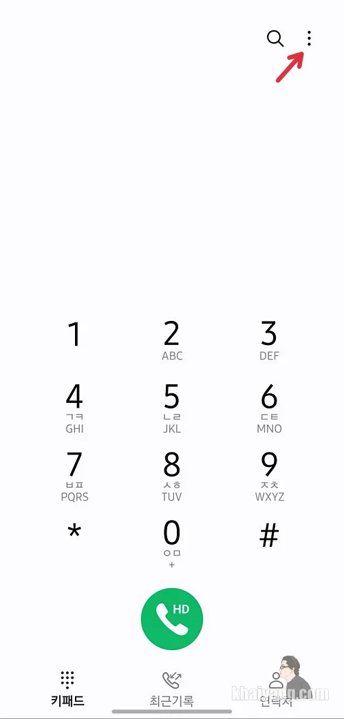 통화 화면에서 상단 오른쪽에 있는 점 3개를 클릭 하고 나오는 팝업 메뉴에서 설정을 선택 합니다.