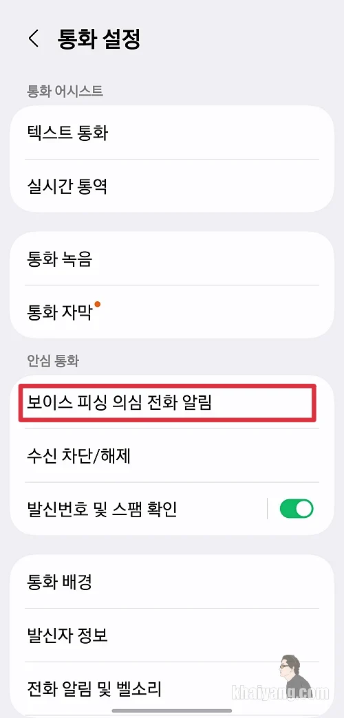 설정 화면에서 보이스 피싱 의심 전화 알림을 선택 합니다.