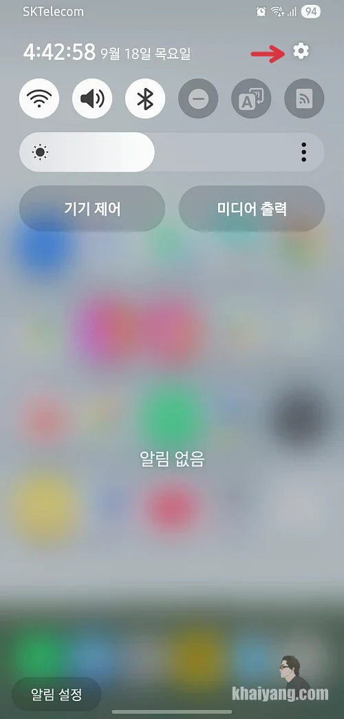알림창을 열고 상단에 있는 톱니바퀴 모양을 클릭 합니다.