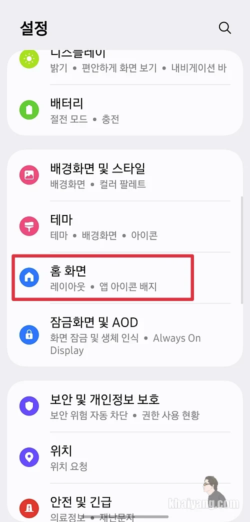홈화면을 선택 합니다.
