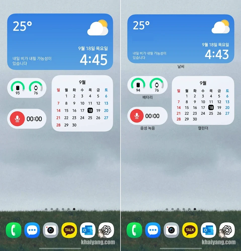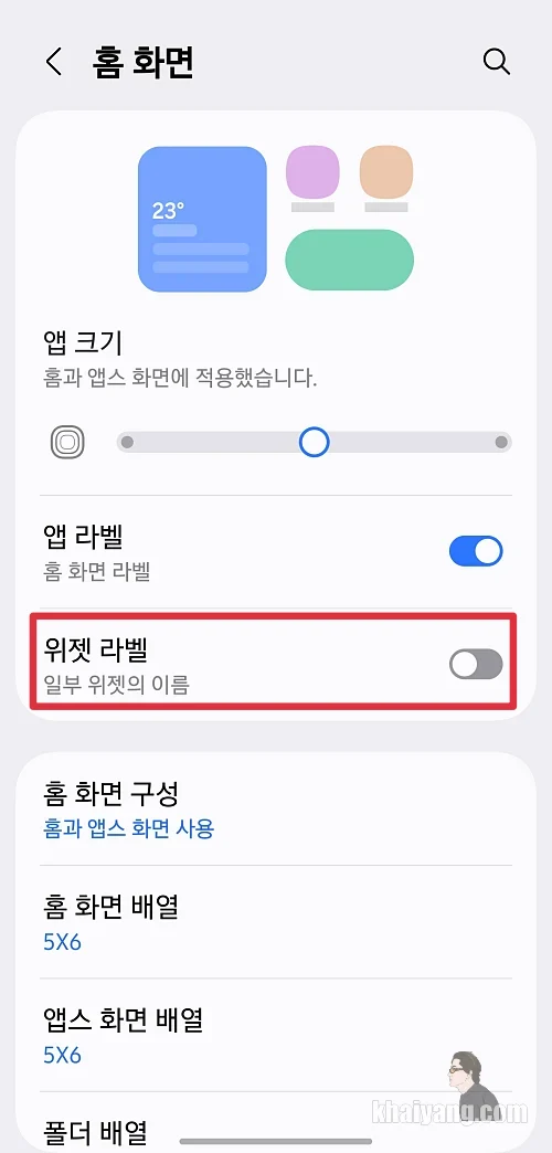 위젯 라벨이 비활성화가 되어 있으면 위젯 그리고 위젯 글씨 크기가 더 크게 보일 수가 있습니다.